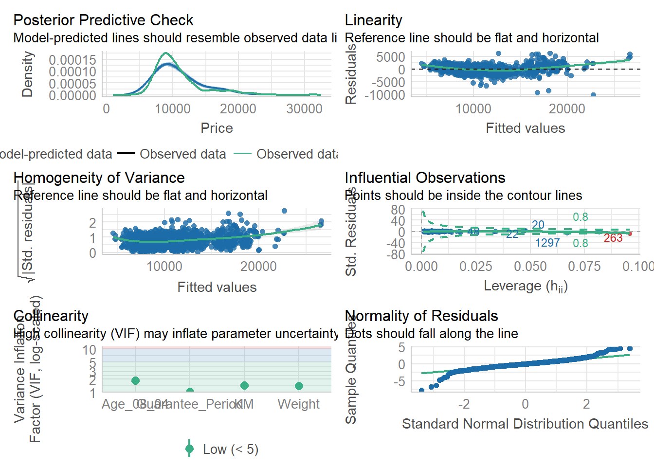 Can also check all the assumptions by one step. Influential observation is an observation in a dataset that, when removed, dramatically changes the coefficient estimates of a regression model