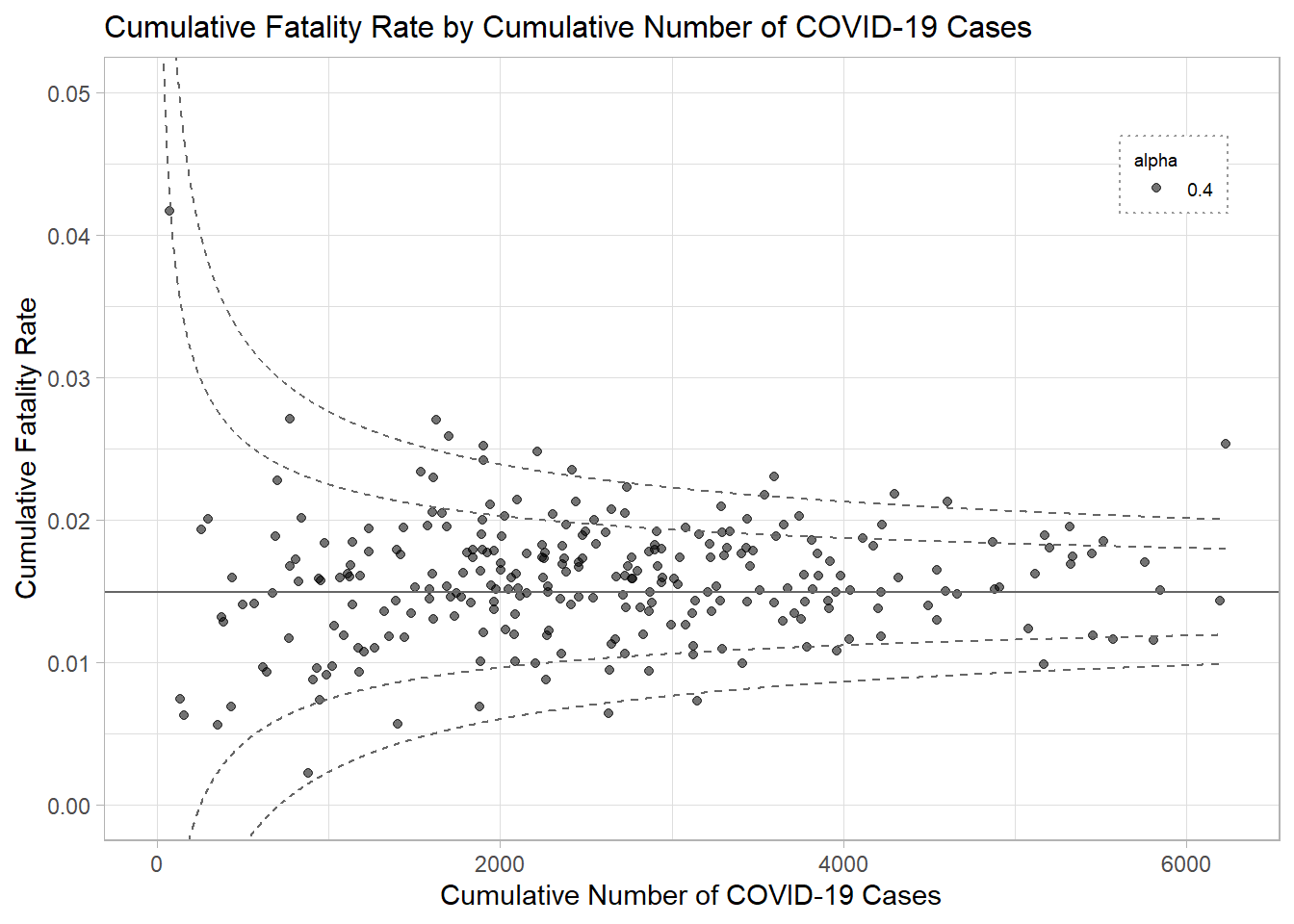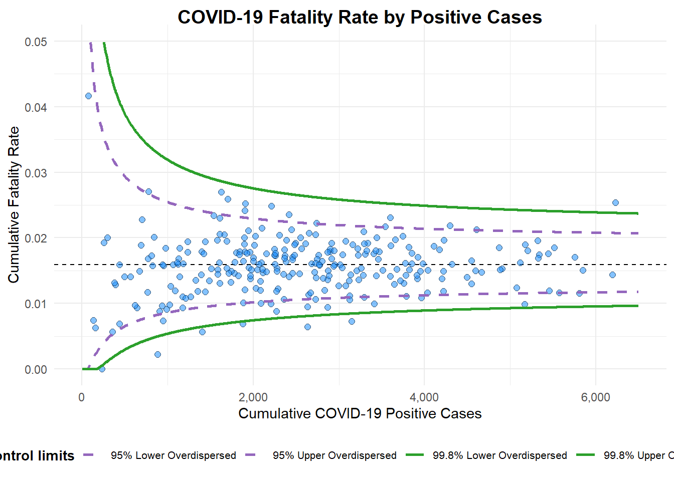 funnel_plot(numerator = covid19$Death,denominator = covid19$Positive,