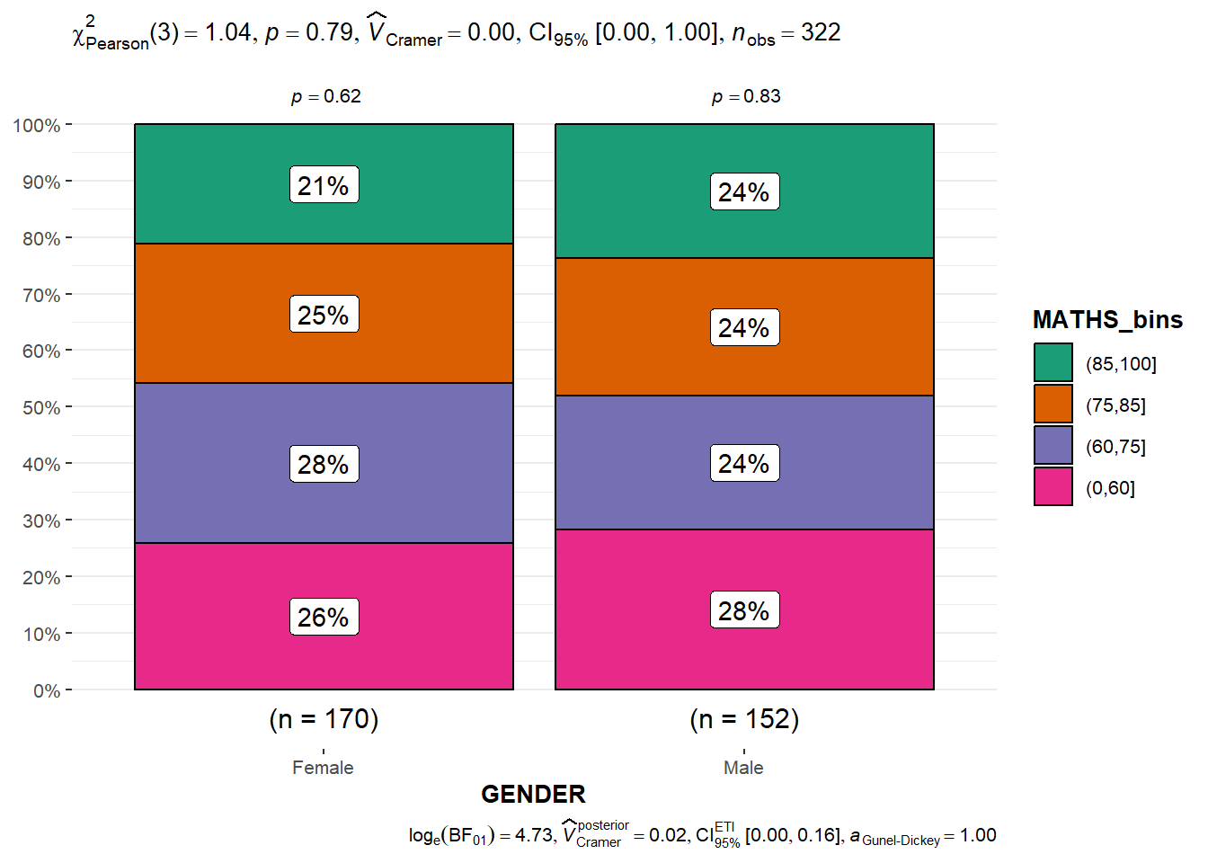 gghistostats(data=exam_data,x=ENGLISH, type="bayes",