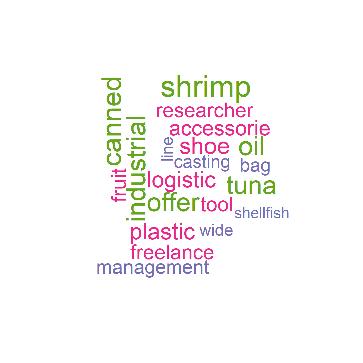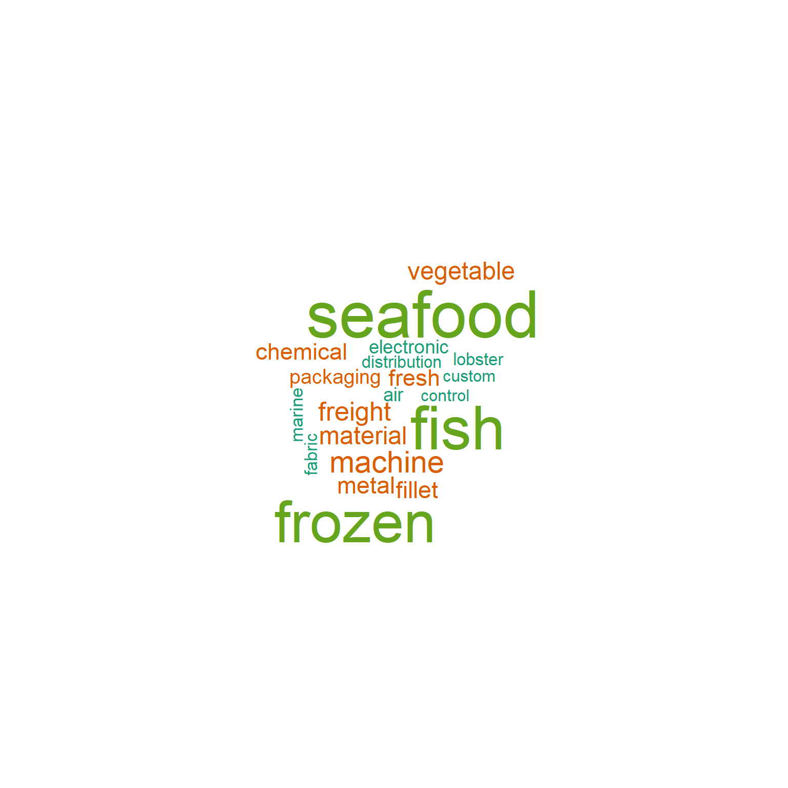 For nodes with high betweenness centrality in topic 3, it is expected to see a majority of them being related to frozen/seafood and fish. However, there are some companies with unrelated features such as pharmaceutical and metal that have unexpectedly high betweenness centrality.